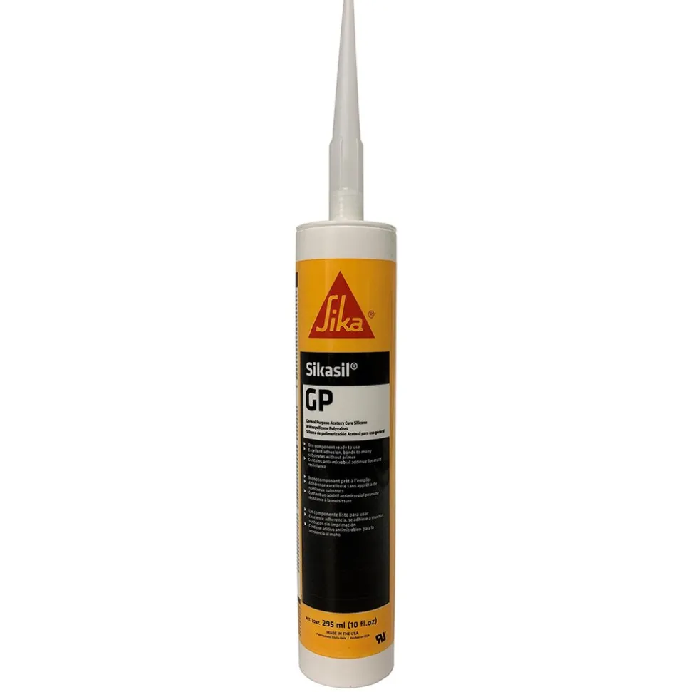 | SikaSil-GP Silicone is an acetoxy-curing low modulus sealant used for general seam sealing in interior and exterior applications.? SikaSil-GP has excellent weather stability, is solvent free and is mold and mildew resistant. White, 295 ML |